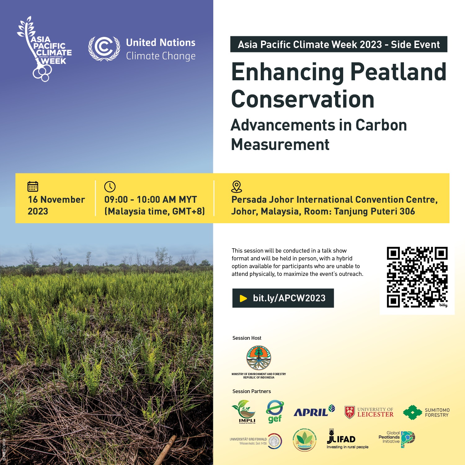 This side event aims to promote collaboration and provide participants with insights into the latest carbon measurement technologies and strategies to reduce greenhouse gas emissions from peatlands. Participants will have the opportunity to share their experiences.