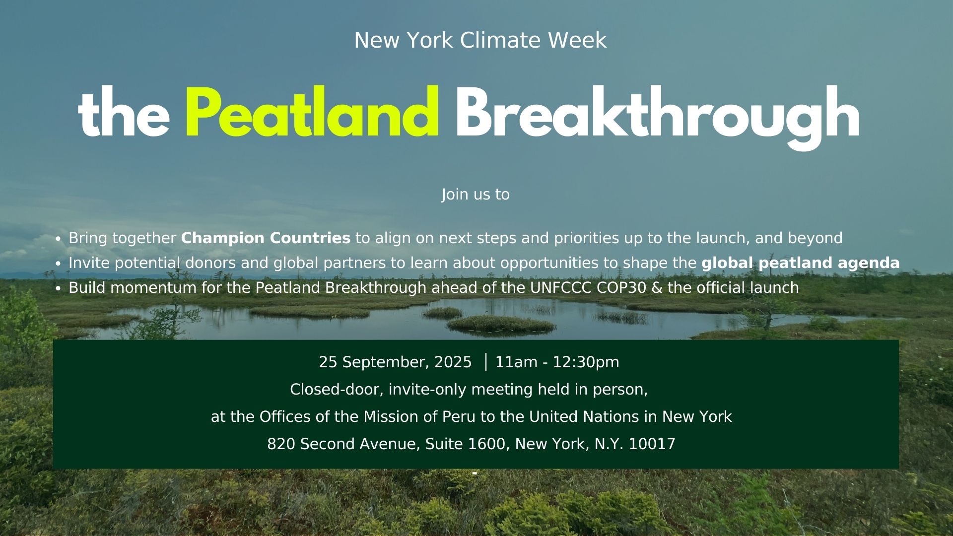 The Peatland Breakthrough is an urgent call-to-action that brings together public and private stakeholders around a shared vision to upscale and accelerate peatland conservation, restoration, and sustainable management worldwide through investments and actions.